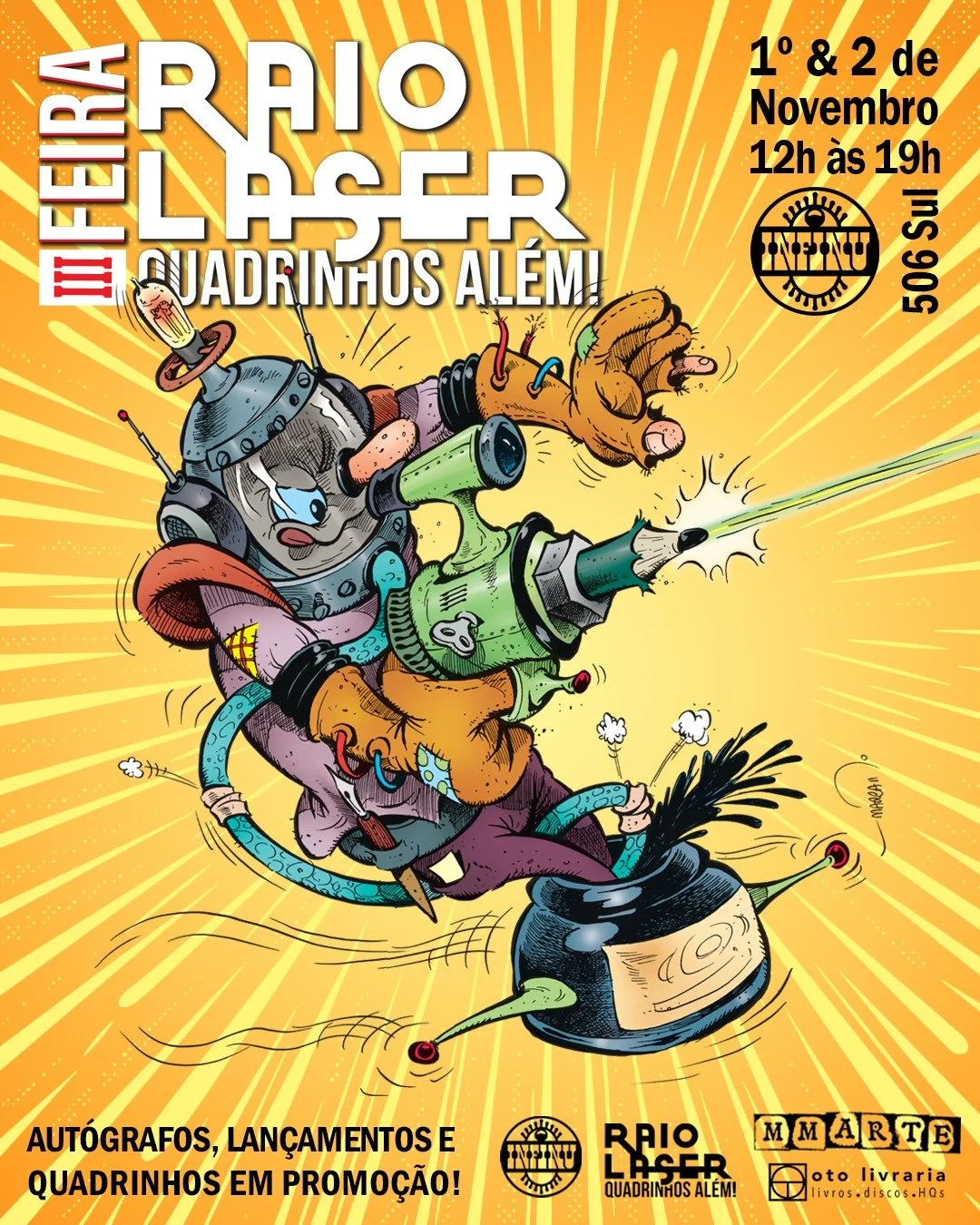A feira é uma ação entre Raio Laser, MMarte e Oto Livraria. O evento reforça o compromisso do blog, no ar desde 2011, em divulgar e dialogar com a produção de quadrinhos independentes, no intuito de apresentar esses autores e suas HQs para novos públicos.