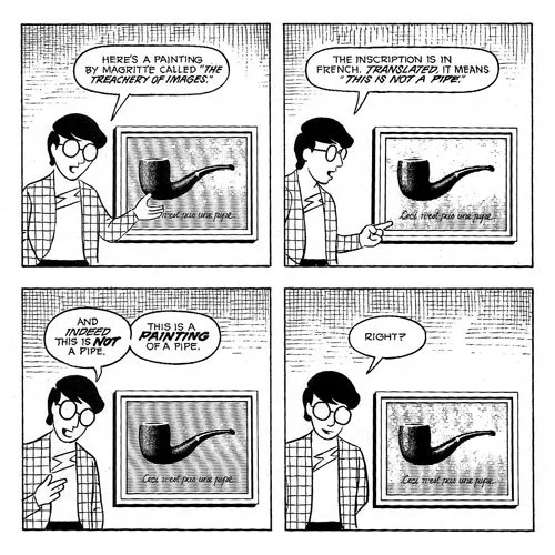 Como acontece em toda gravação de Lasercast ou artigos em que fazemos resenhas de quadrinhos, tentamos criar um recorte para encadear as leituras. Um traço em comum, uma curadoria em especial, algo que saia da aleatoriedade. Esse exercício de recorte já é um meta-pensamento, e se este texto buscasse pensar/criticar outros textos igualmente escritos em prosa, este seria um exercício metalinguínstico. Mas como falamos de Histórias em Quadrinhos, nosso texto escrito não consegue ser metalinguistico. Pelo menos não como é metalinguagem o Desvendando os Quadrinhos de McCloud ou o Desaplanar do Sousanis. Quadrinhos que falam sobre quadrinhos. Mas todo esforço de recorte é esforço de meta-pensamento, de delinear uma meta. O recorte é um método. Metá hodos, duas palavras gregas que superficialmente significam "por meio de” e “caminho”, respectivamente. Mas a palavra metá, como todas as palavras, é muito mais preenchida de significados que isso. Sem mergulharmos no academicismo profundo - apenas molhando só a pontinha dos dedos - cito o livrinho (chamo assim devido às suas dimensões) A Meta-linguagem de Samira Chalhub. No livro a autora emprega estas definições para metá: “mudança, posterioridade, além, transcendência, reflexão, crítica sobre...”. Nesta visão torna-se claro que talvez o uso corrente do meta como gíria se aproxime mais do seu significado amplo do que parece.