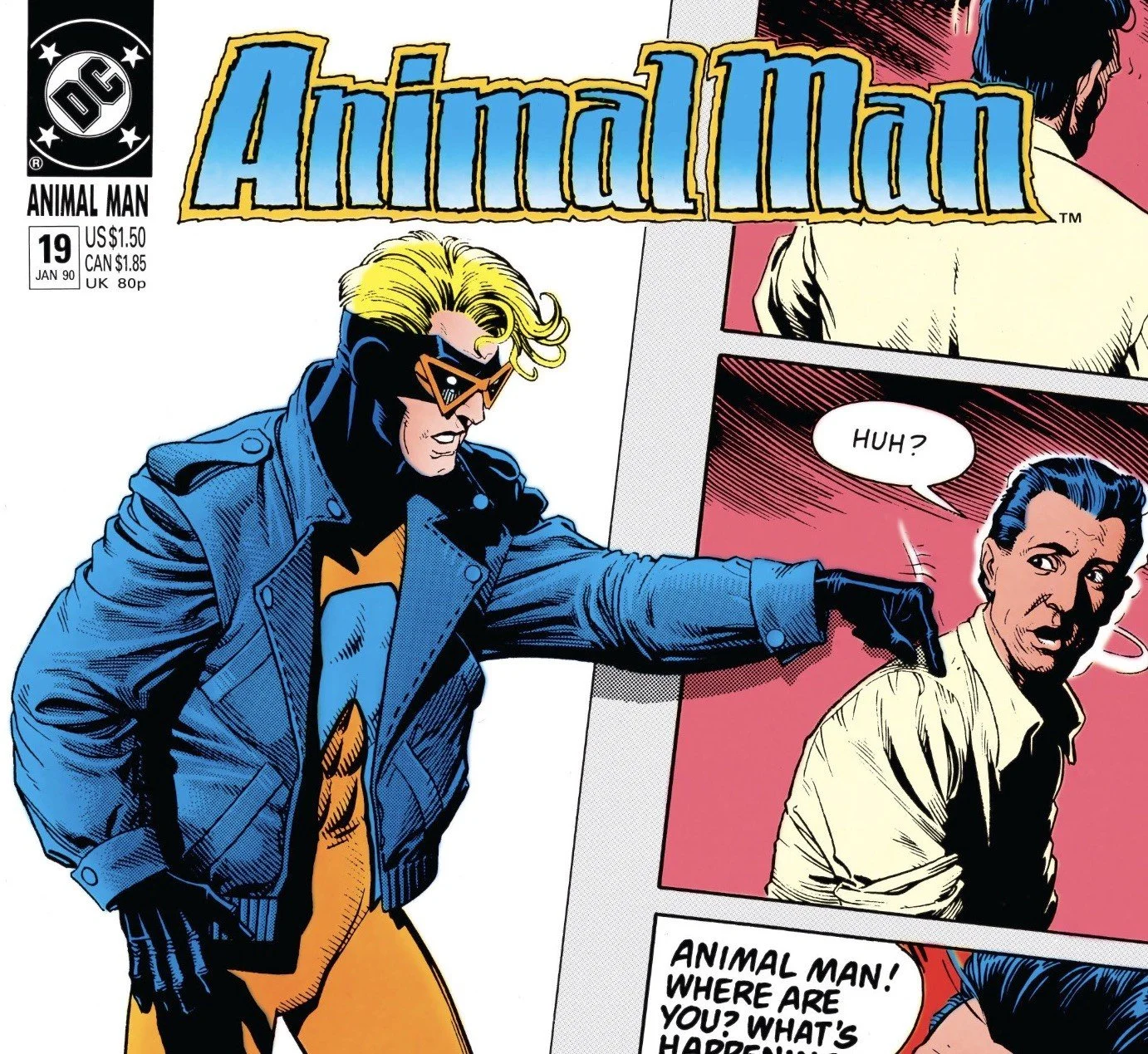 Já tem muita coisa sobre esse personagem aqui na raio, especificamente aqui , aqui e aqui , mas resumindo, Animal Man foi um título publicado no início dos anos 90 nos EUA e um dos títulos precursores do selo Vertigo da DC Comics. Trata-se de um super-herói tipo D escolhido por Morrison como sua estreia no mercado americano. O fato de ser um personagem obscuro dá o tom da dinâmica das histórias que tinham a metalinguagem como elemento propulsor. Mas trata-se aqui de uma outra abordagem.