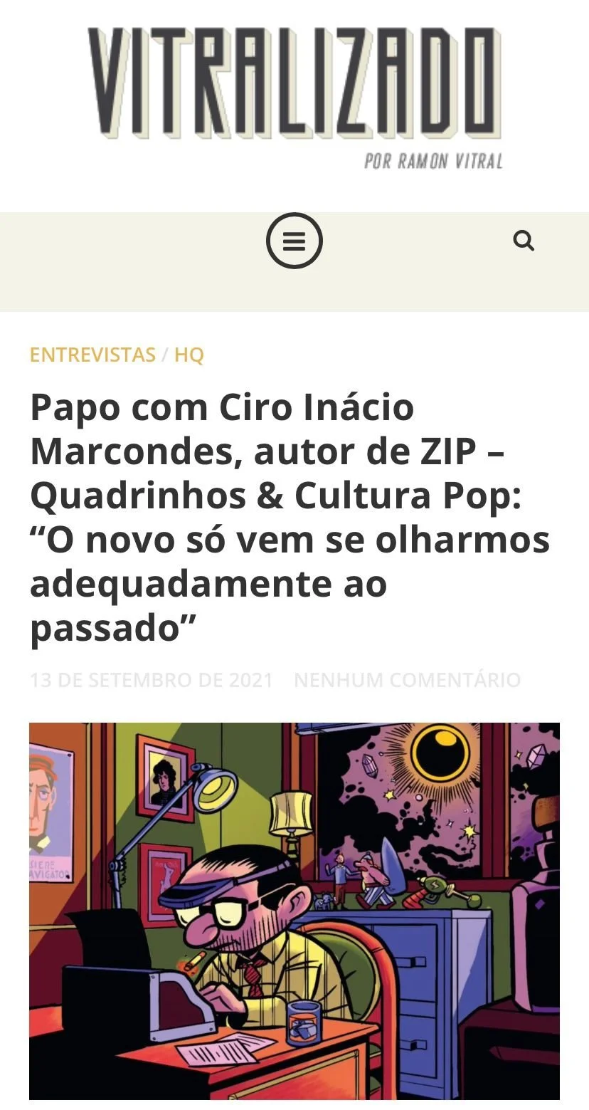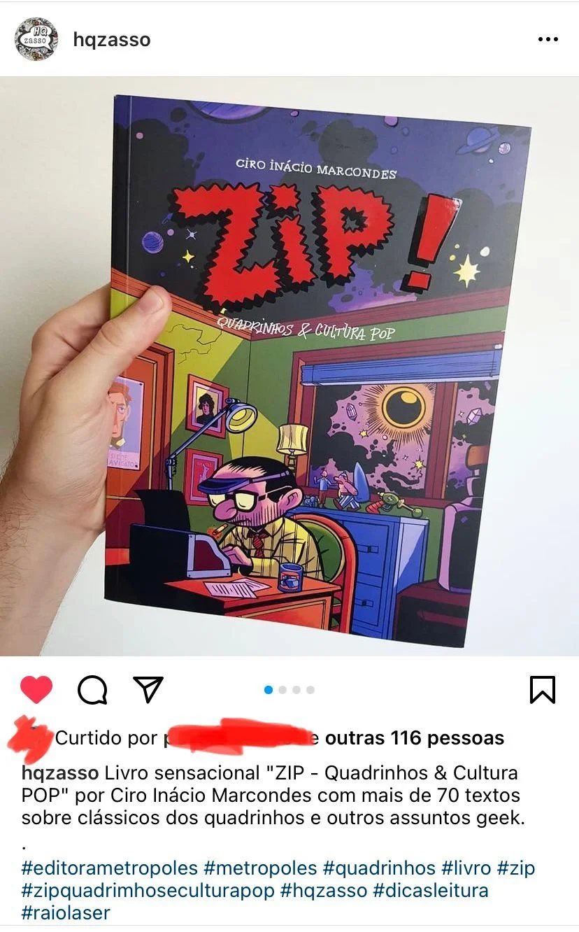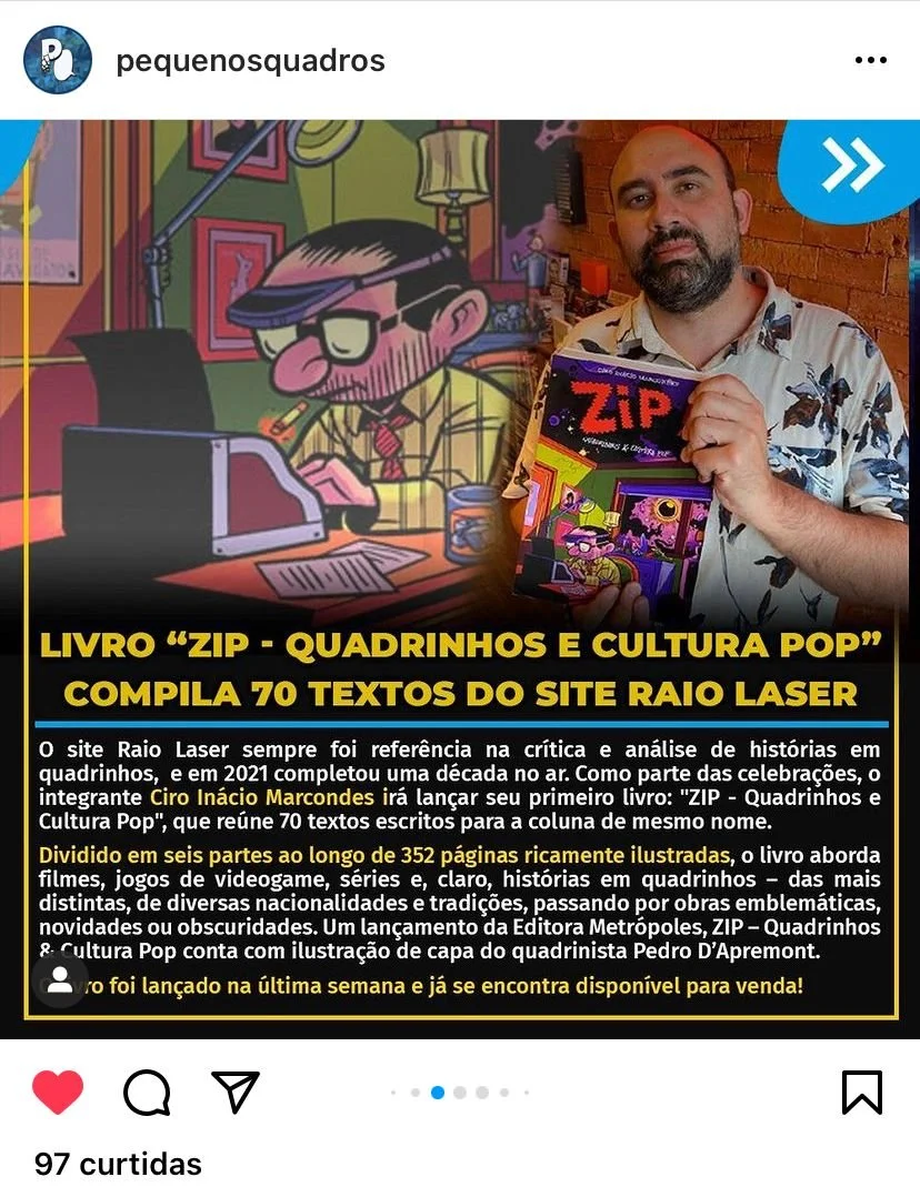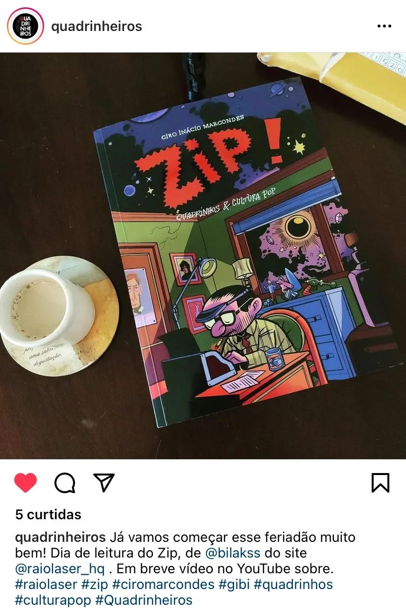 O livro é o compilado de uma cuidadosa, criteriosa e melhorada seleção de textos críticos sobre quadrinhos e adjacências escritos para a coluna ZIP, do portal Metrópoles, por Ciro Inácio Marcondes, fundador e editor da Raio Laser.