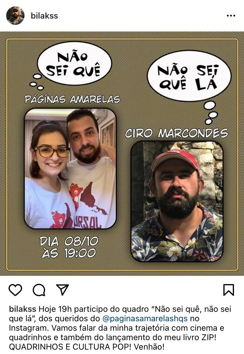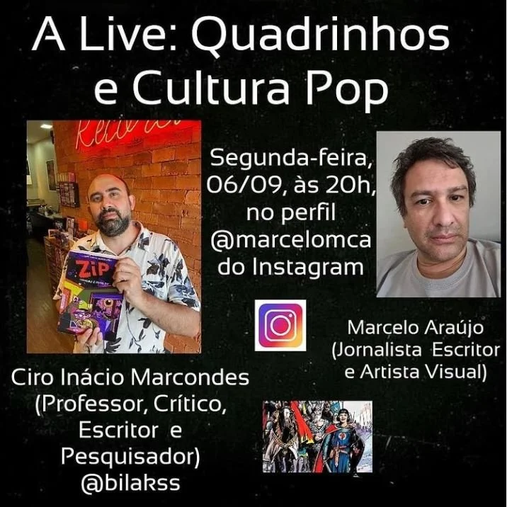 Nesta quinta-feira 28.10, às 19h, acontece um bate-papo no perfil do @metropoles no Instagram entre o autor e três convidados especiais: Daniel Lopes, editor e sócio-fundador da editora e do canal Pipoca & Nanquim; Márcio Paixão Jr, editor da MMarte, cineasta, roteirista de quadrinhos e autor do texto de orelha do livro; e Pedro d'Apremont, quadrinista e ilustrador, responsável pela capa da obra.