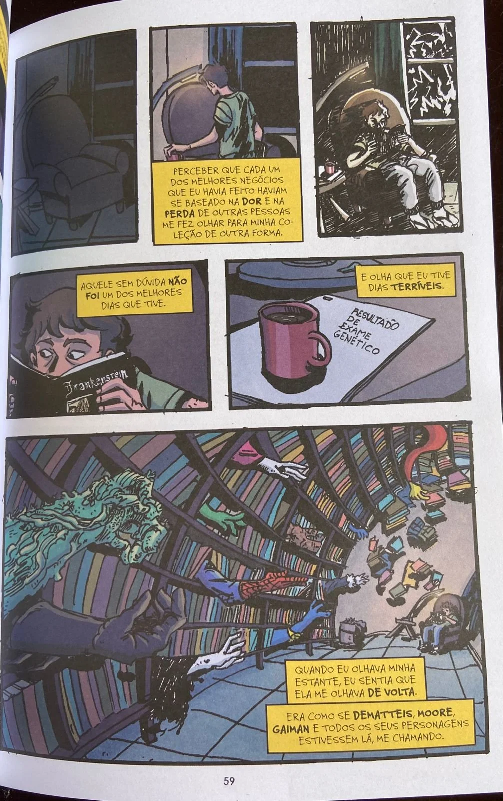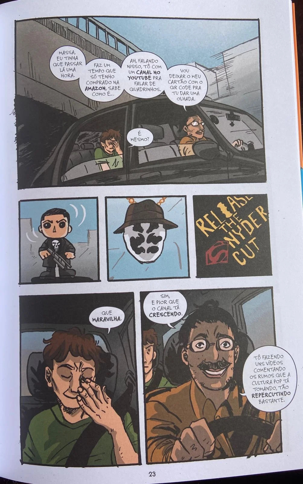 E está aí o grande acerto de O Colecionador, ao focar na existência desse personagem mediado por esse universo cada vez mais estéril dos quadrinhos, onde a experiência e o prazer da leitura são substituídos por uma nuvem midiática (uma noosfera, segundo Edgar Morin) operada por youtubers lazarentos que esterilizam o simples ato arcaico de sentar, ler e ser consumido pela verdadeira experiência de imersão que são os livros. Érico tem um grande despertar para esse sutil existencialismo durante a narrativa do gibi, e a história dele toda parece um chamado importante para que outras pessoas presas nessa noosfera se atentem para uma vida plena e possível de se articular sem essa mediação.