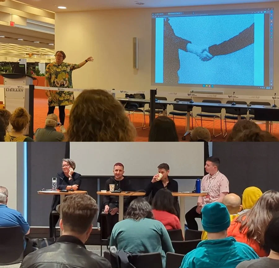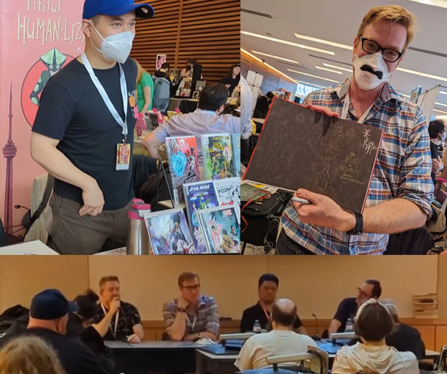 Loo e North em suas mesas, e um painel sobre o ofício de roteirista com Jim Zub (Conan, Rick & Morty), North, J.Torres (Teen Titans Go, Batman Nightwatch) e Mark Askwith (O Prisioneiro, Batman Black & White.)